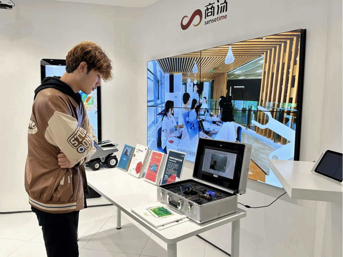 在商汤科技展馆,公司师生体验了城市实时监控、汽车自动驾驶、远程手术操作、程序自动编程、围棋人机博弈、场馆3D建模等先进AI技术,感受到AI技术正在公共管理、医疗、教育等各领域为人们工作生活带来越来越多的改变和便捷。