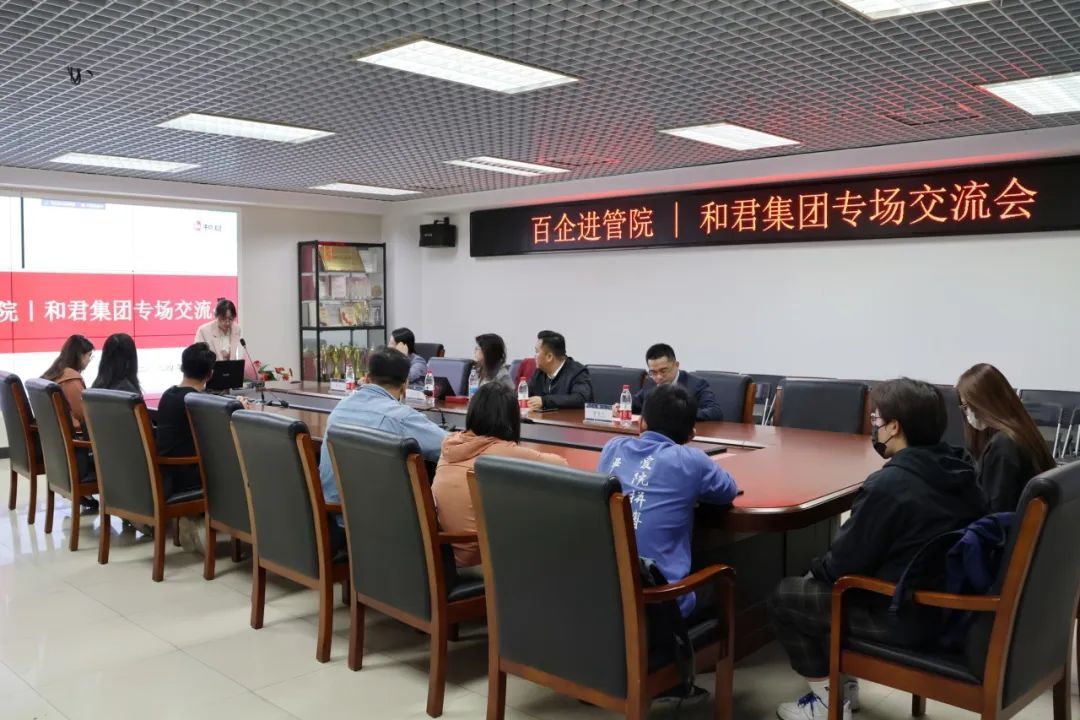 4月16日,为进一步推动院企合作展开,365best体育官网登录开展“和君集团专场交流会”。交流会邀请到和君集团合伙人冯翱、和君教育基金会秘书长雷金文、和君集团人力资源总监程立君就资本市场的发展趋势、职业发展规划、和君的人才培养体系与招聘要求等内容进行分享交流。管理公司党委副书记姚远出席会议。